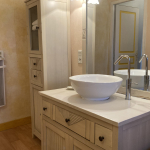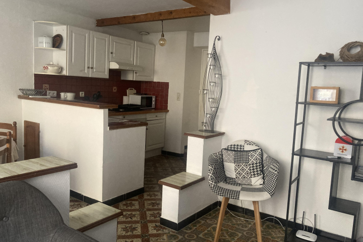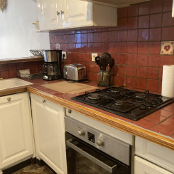APPAREILS MENAGERS : Les appareils ménagers sont intégrés dans la cuisine ou placés sur le plan de travail. Un frigidaire-congélateur est situé dans la pièce arrière de la cuisine. Les notices disponibles sont entreposées dans le placard à compteur EDF situé à gauche de l’entrée.